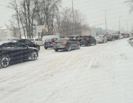 Киев в пробках: техники много, но снег и гололед все равно побеждают