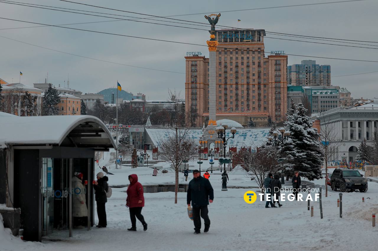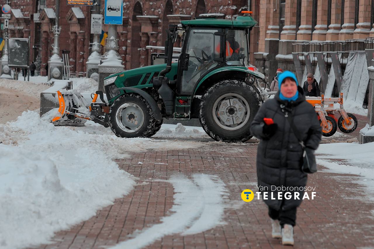 На фото видно, что весь Майдан Независимости и Крещатик практически замело. В течение дня ситуация не сильно улучшилась, ликвидировать последствия непогоды быстро не удается. Хотя техника работает непрерывно, но вероятнее к вечеру лучше не станет.