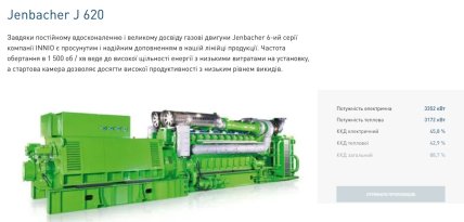 Еще шесть – модели JMS 620 GS-NL – мощностью 3,3 МВт и ценой 63,51 млн грн за единицу (или 1,46 млн евро). Такие могут покрыть потребности в электроэнергии примерно 20 тыс. средних домохозяйств или промышленного объекта среднего масштаба. Общая стоимость оборудования составила 1,2 млрд. грн.