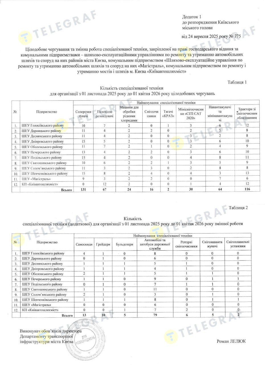 • в 2024-2025 годах на 11 ШЭУ и КП "Киевавтодормост" было 46 тыс. т технической соли, 774 т щебня и 55,3 тыс. т песка,