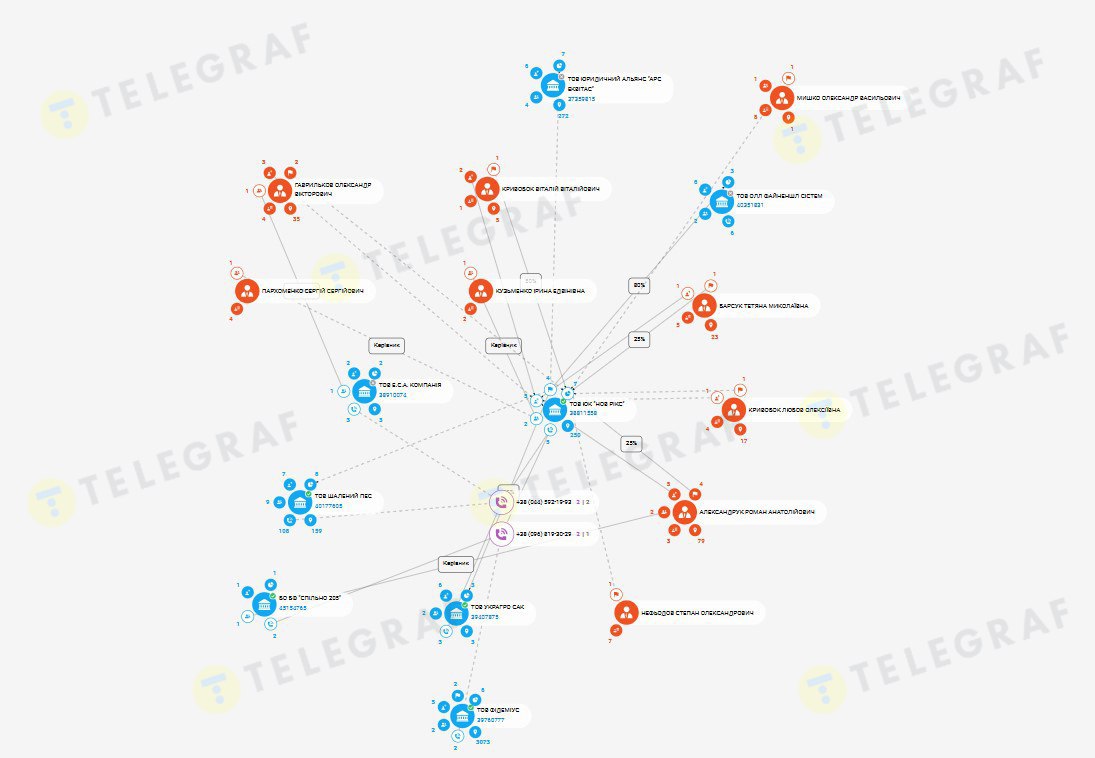 В конце 2021 года киевлянка вышла из состава владельцев "Студии права", что вызывает вопросы к текущим доходам и возможности найти почти 8 млн. грн. на расчеты за приобретенную на аукционе недвижимость. Возможно, финансово Кривобок-старший сможет помочь ее сын Виталий, которому перешли права на юридическую фирму (в конце 2025 года "Студия права" сменила название на "Юридическая компания Нов Рикс"). Однако, учитывая информацию из открытых источников, доходы компании невысокие, к тому же делить их нужно на троих, ведь в бенефициарах кроме Виталия Кривобока — также Татьяна Барсук и Роман Александрук.