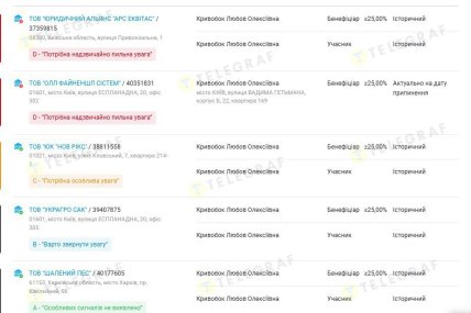 Список компаний, к которым имела отношение Кривобок
