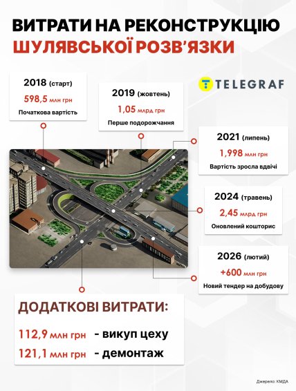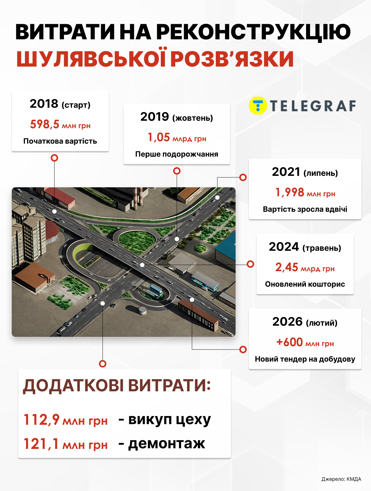 В случае с Шулявской развязкой из-за споров между участниками торгов фактическое выполнение работ по демонтажу заводского цеха началось только в декабре 2025. Хотя, как сообщал "Телеграф", в это время они должны были быть уже выполнены. По состоянию на середину марта 2026 подрядчик продолжает освобождать территорию от остатков конструкций.