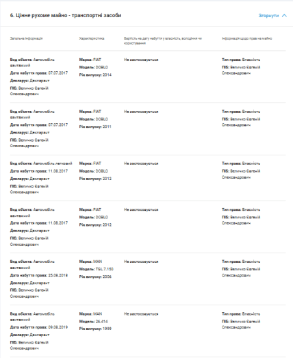 По данным декларации Величко, в его собственности — дом, две квартиры и земельный участок. Частью он владеет на правах общей собственности. На Величках зарегистрированы пять автомобилей, однако большинство грузовых. Легковой только FIAT DOBLO 2012 года выпуска. У супруги TOYOTA RAV-4 HYBRID 2020 года. Отметим, что авто второго участника ДТП на фото ГСЧС не попало.