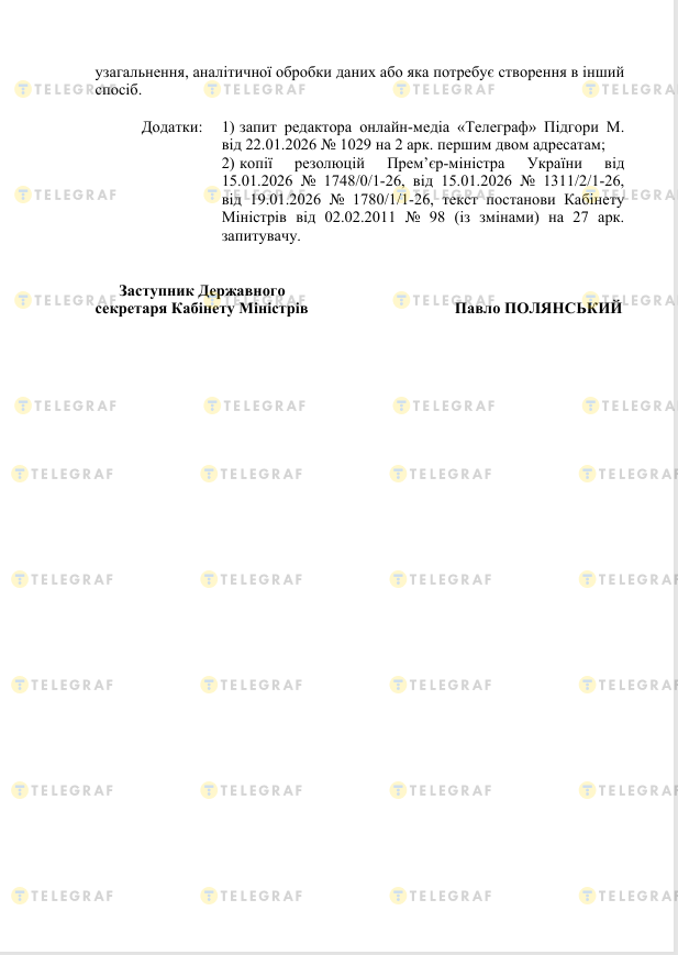 Ответ Секретариата Кабмина на запрос "Телеграфа"