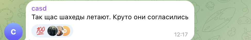 • Так сейчас "шахеды" летают. Круто они согласились.