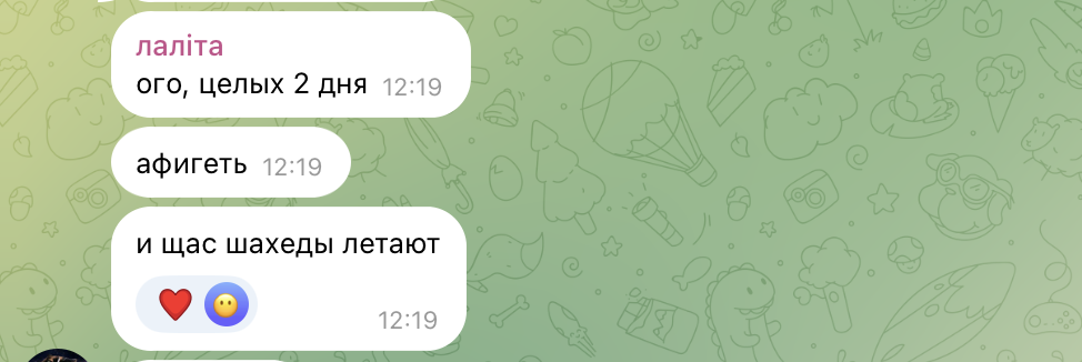 • Ого, целых два дня. Офигеть и "шахеды" сейчас летают.