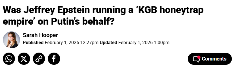 "Секс-империя Эпштейна была "медовой ловушкой КГБ": финансист-педофил неоднократно вел переговоры с Путиным после вынесения обвинительного приговора, а российских девушек специально привозили для сбора компромата на всемирно известных личностей", – с таким длинным заголовком вышла публикация в британском издании Daily Mail.