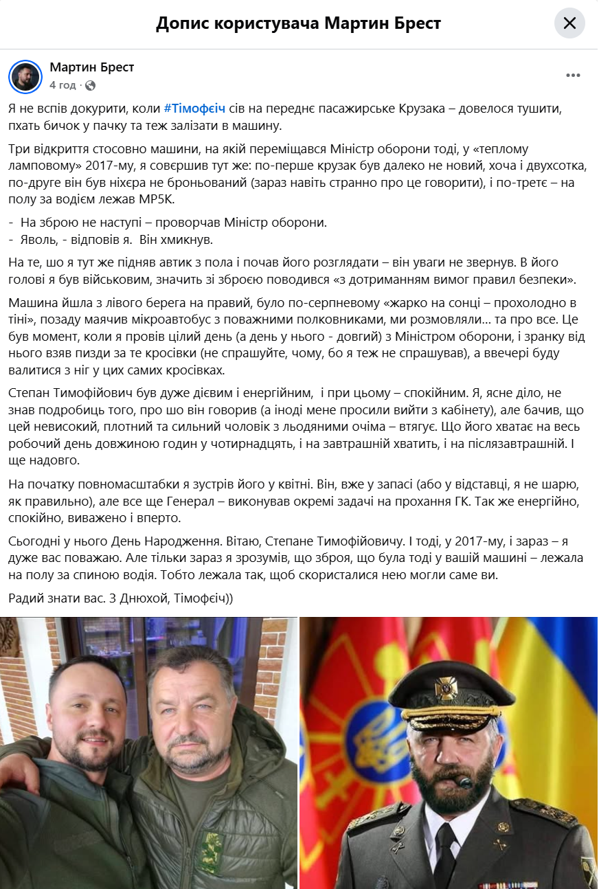 Однако, как оказалось, даже будучи в отставке, генерал помогал украинской армии и выполнял отдельные задачи по просьбе главнокомандующего. Об этом рассказал сотрудник первого военного радио "Армия ФМ" Мартин Брест. Он лично знаком со Степанов Полтораком и поздравил его с днем рождения в своем Facebook, добавив совместное фото и рассказав некоторые детали про генерала.