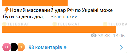 Однако часть телеграм-каналов подхватили неполную цитату и выдали ее за предупреждение о ракетных обстрелах от президента.
