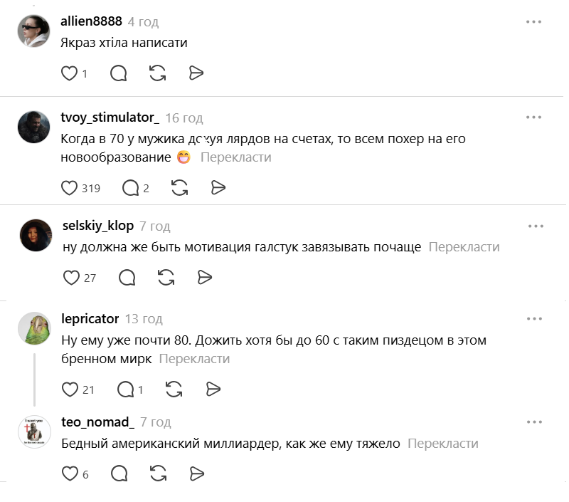 - Когда в 70 у мужика дофига лярдов на счетах, то всем похер на его новообразование.