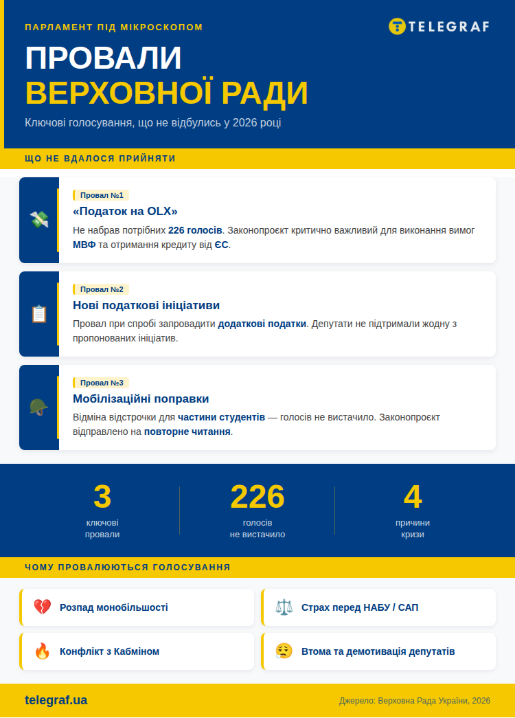 Провалы голосований ВР. Инфографика: "Телеграф"