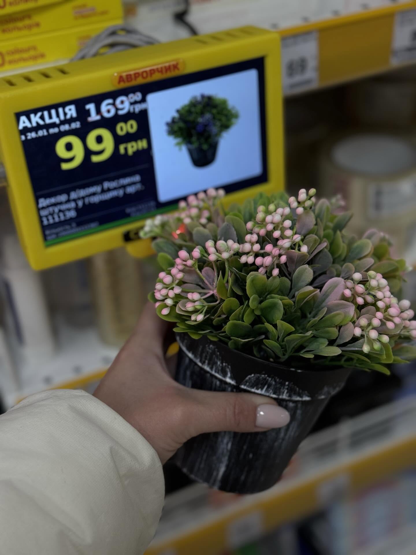 - Цветок декоративный искусственный, разный ассортимент стоит 99 грн вместо 169 грн.
