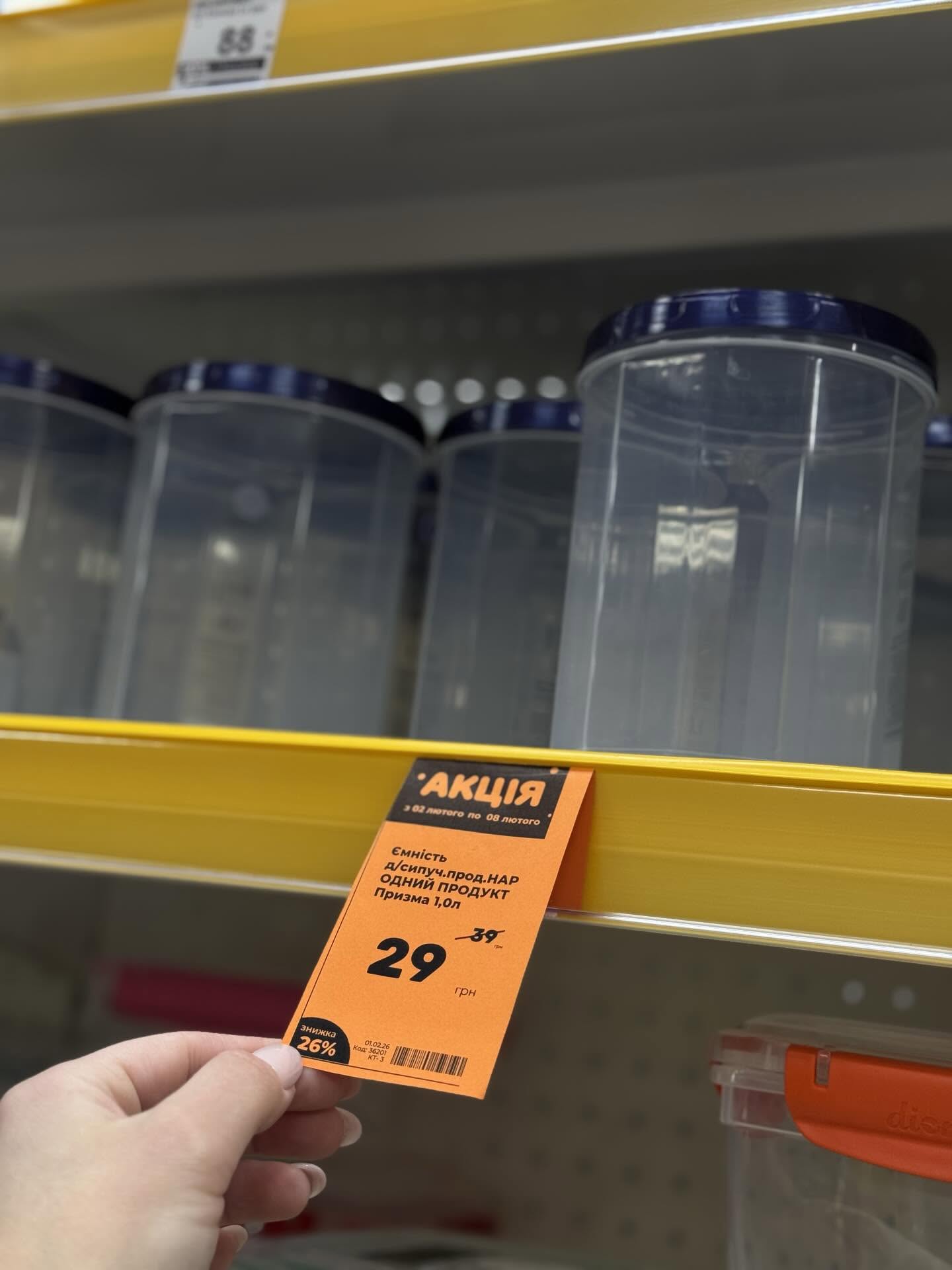 - Емкость для сыпучих продуктов 1 л — 29 грн, цена снижена на 26% с 39 грн.