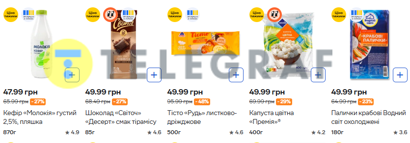 Акции проводятся в рамках программы "цінотижки". Это "цена недели" на ряд товаров, которая действует с четверга по среду. Каждый раз товары могут меняться и акция будет действовать на другие продукты. Действует по всей Украине.