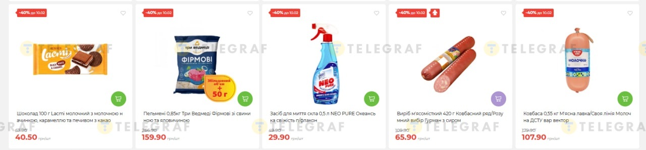Есть и другие скидки – 40% на мороженое, пельмени, колбасу и средства для дома. Например: