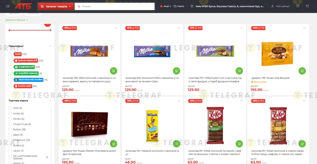 Скидки на сладости в "АТБ". Фото: скриншот из магазина