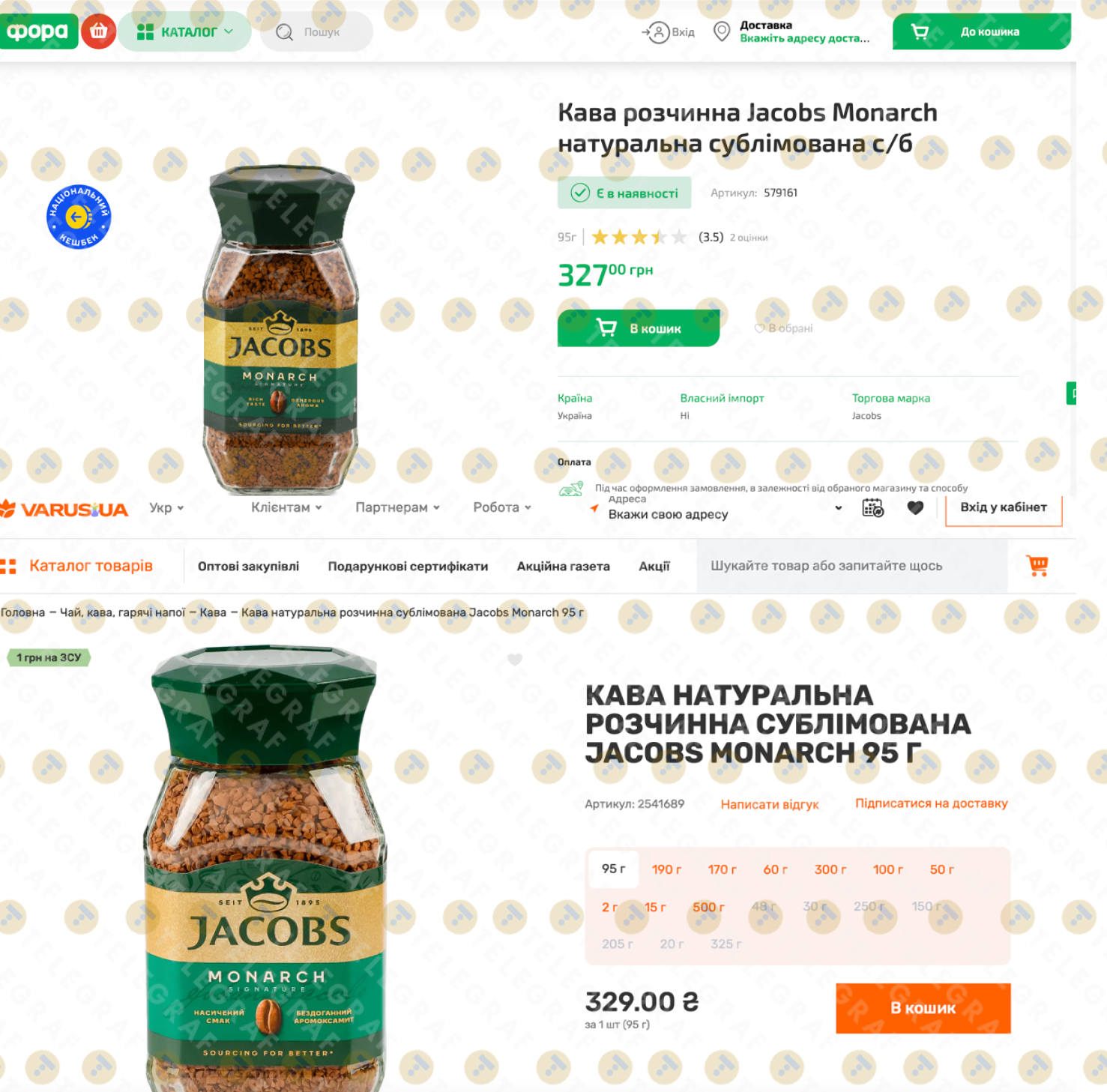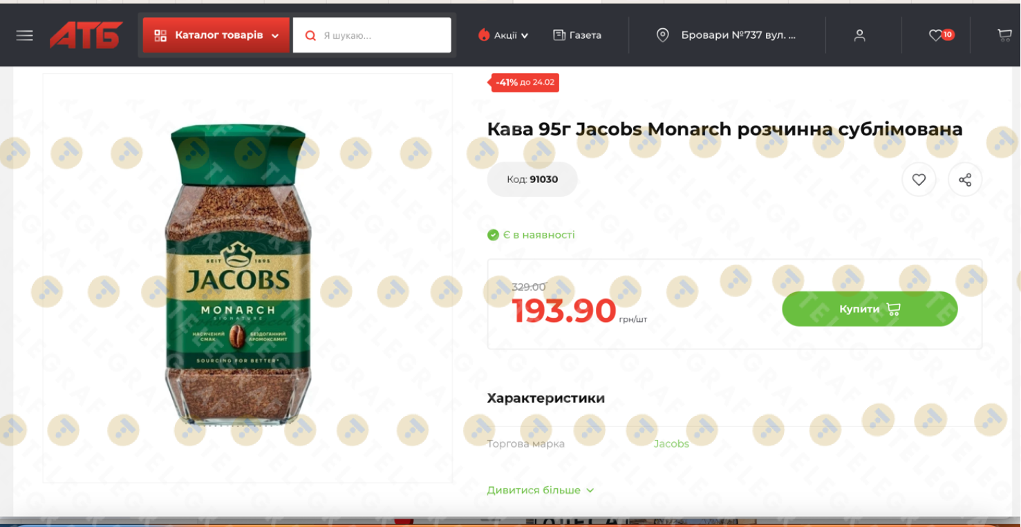 • В магазинах " Varus" такую же банку Jacobs Monarch предлагают за 329,00 грн. Разница с "АТБ" составляет более 135 гривен.