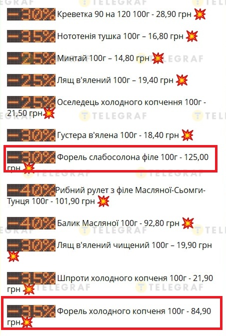 Скидки на рыбу в "Классе". Фото: скриншот с Telegraf-канала