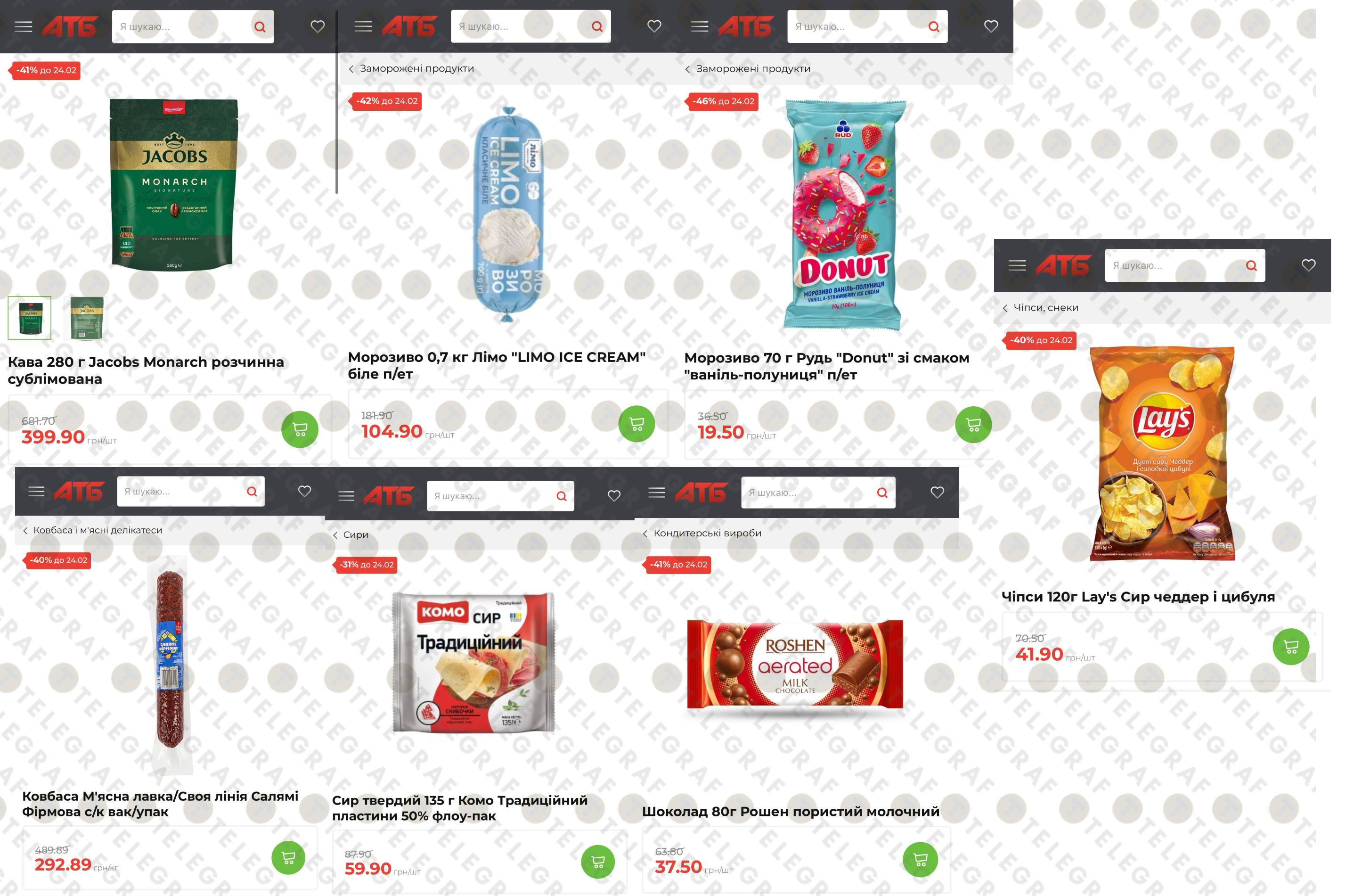 - Чипсы Lay’s (120 г): Популярный снек со вкусом чеддера и лука стоит 41.90 грн (скидка 40%).
