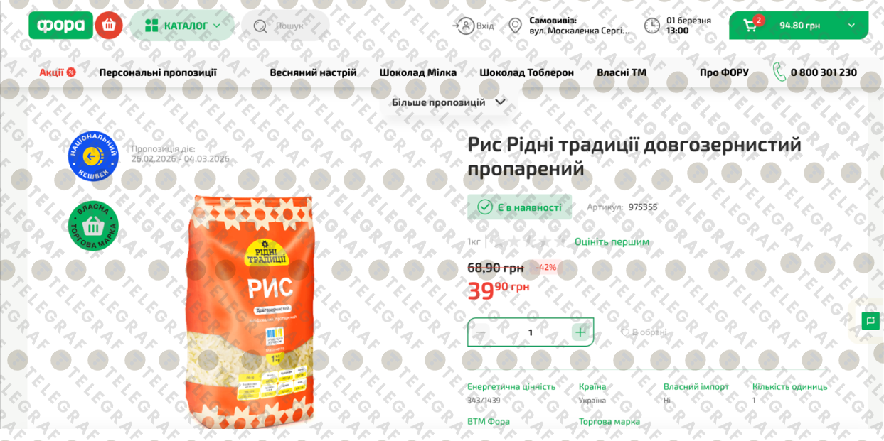"Телеграф" исследовал сайт магазина. Мы расскажем, сколько стоит черт "Родные традиции" (долгозернистый пропаренный).