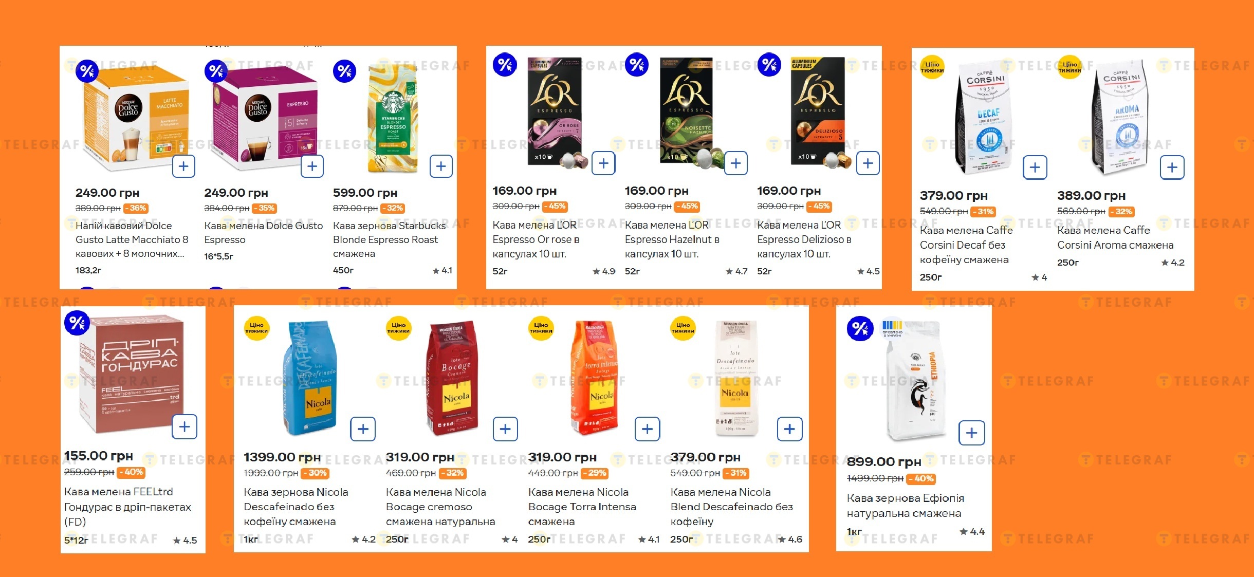 В сети супермаркетов "Сильпо" стартовала выгодная акция на кофе — скидки достигают 45%. Это прекрасная возможность пополнить запасы любимого напитка по значительно более приятным ценам.