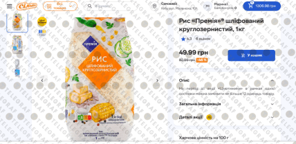 "Телеграф" расскажет подробнее о скидке на этот товар. Согласно данным онлайн-магазина ритейлера, пока упаковку шлифованного круглозернистого риса весом 1 кг можно приобрести со скидкой 46%.