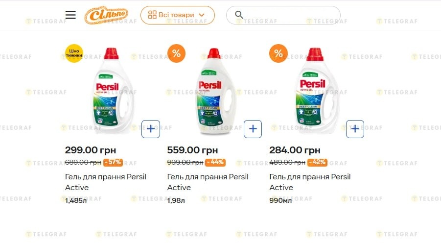 Скидки на гель для стирки в "Сильпо". Фото: скриншот из магазина