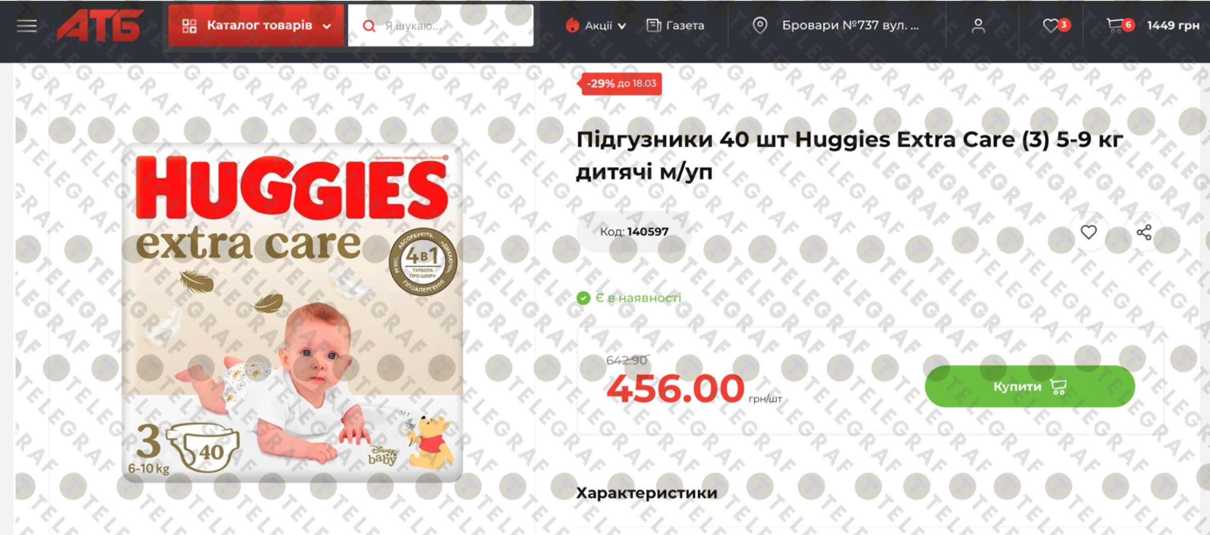 Минус 140 гривен: в одном магазине можно дешево купить подгузники Huggies