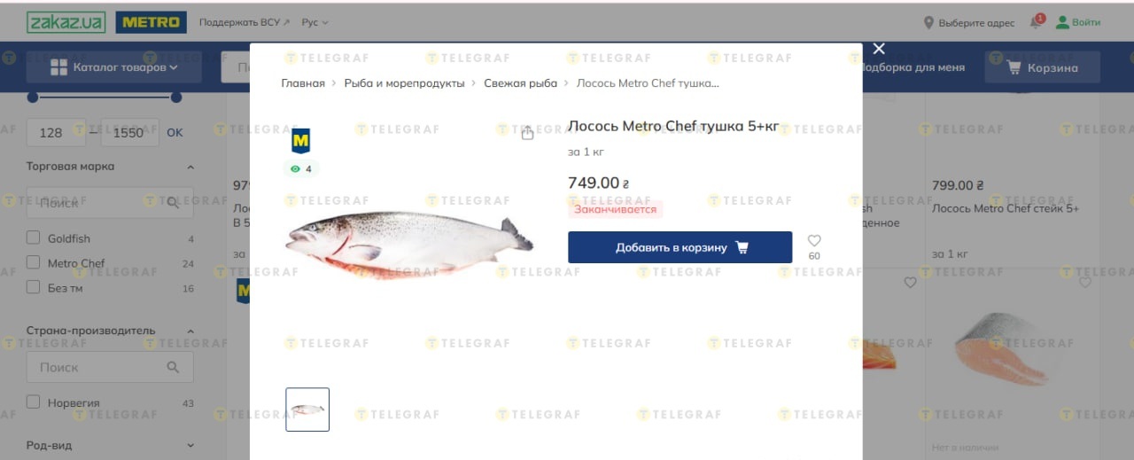 В одном украинском магазине действует выгодная скидка на тушку лосося: где можно сэкономить 320 грн за кило