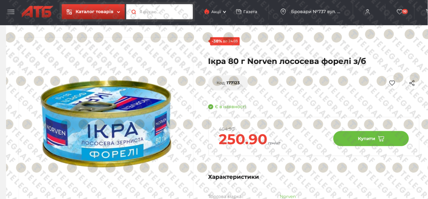 Речь идет об икре лососевой форели от известного бренда Norven (жестяная банка, 80 г). "Телеграф" расскажет поподробнее.