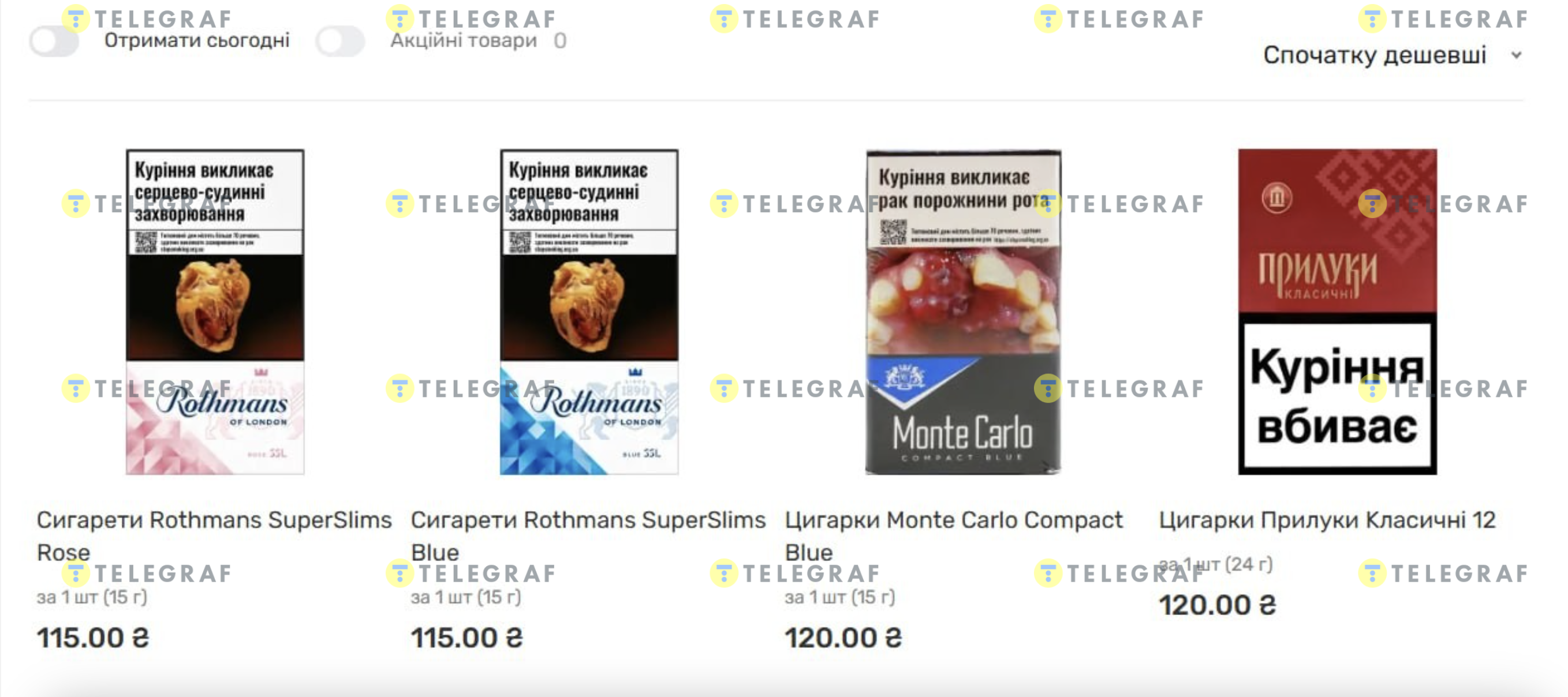 В магазинах "Варус" самыми дешевыми сигаретами есть Rothmans SuperSlims стоит 110 грн, далее следуют Monte Carlo – 120 грн, а Прилуки Классические 12 – 120 грн за упаковку.