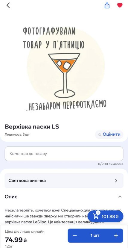 • У Le Silpo аналогичный товар с отметкой "LS" продается за 74.99 грн.