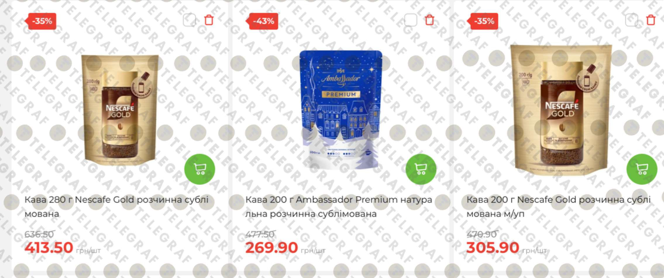 - На линейку Nescafe Gold действуют скидки до 35%. Так, упаковка 200 г теперь стоит 305,90 грн (была 470,90 грн), а большая пачка 280 г обойдется в 413,50 грн.