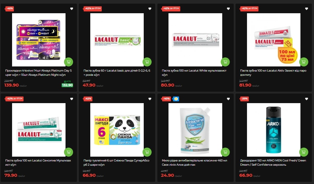 - Зубные пасты Lacalut (несколько видов) – минус 42%;