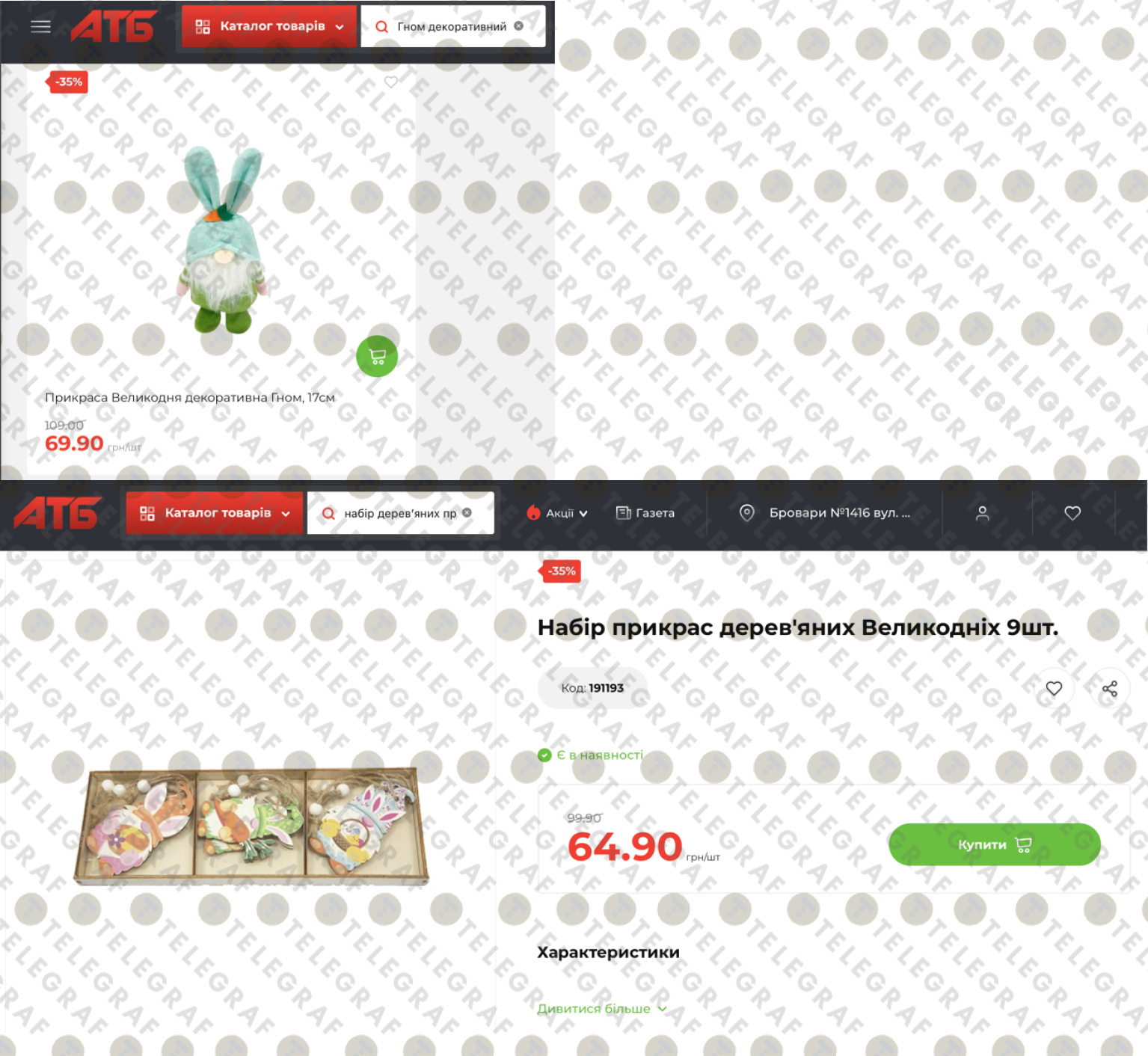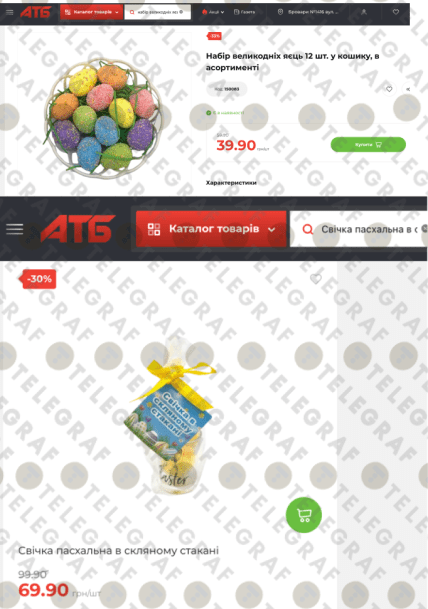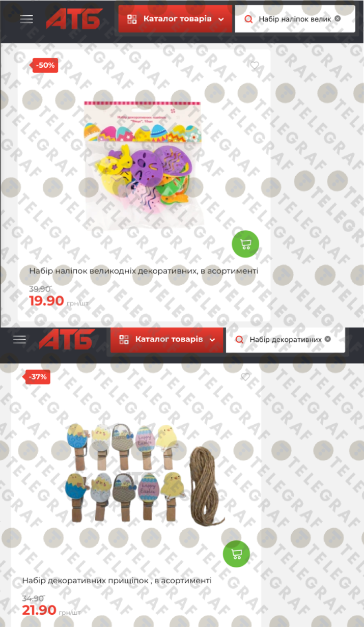 Наибольшую скидку в размере 50% получил набор декоративных пасхальных наклейок, цена которого упала с 39,90 до 19,90 грн. Также значительно подешевели тематические украшения: набор декоративных прищепок теперь стоит 21,90 грн. вместо 34,90 грн., что соответствует скидке 37%.