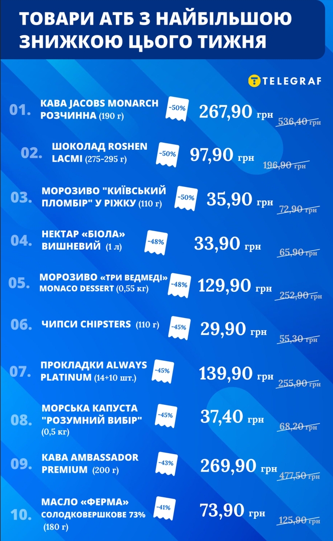 ТОП-10 товаров с самой большой скидкой на этой неделе в АТБ
