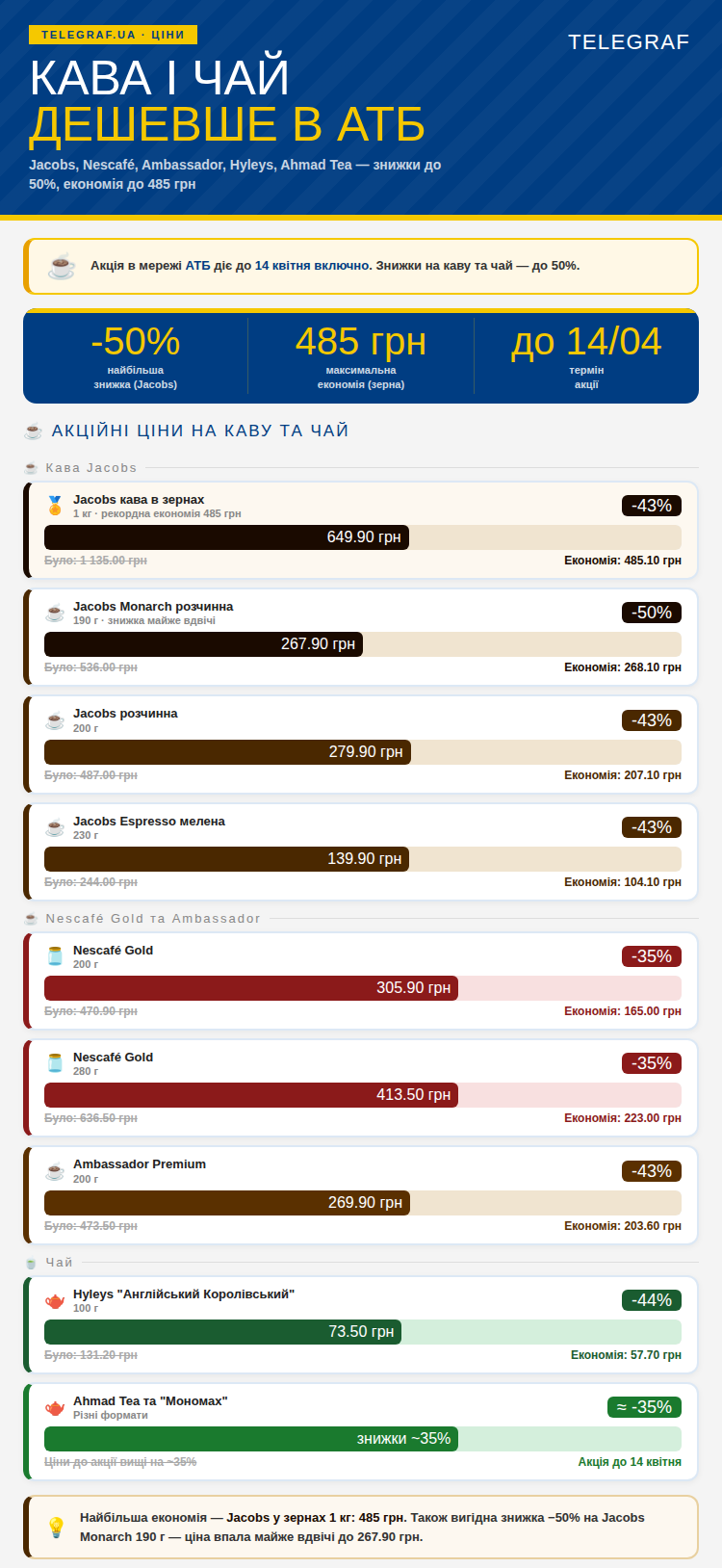 Скидки на кофе и чай в АТБ до 14 апреля. Фото: инфографика "Телеграфа", сгенерированная искусственным интеллектом