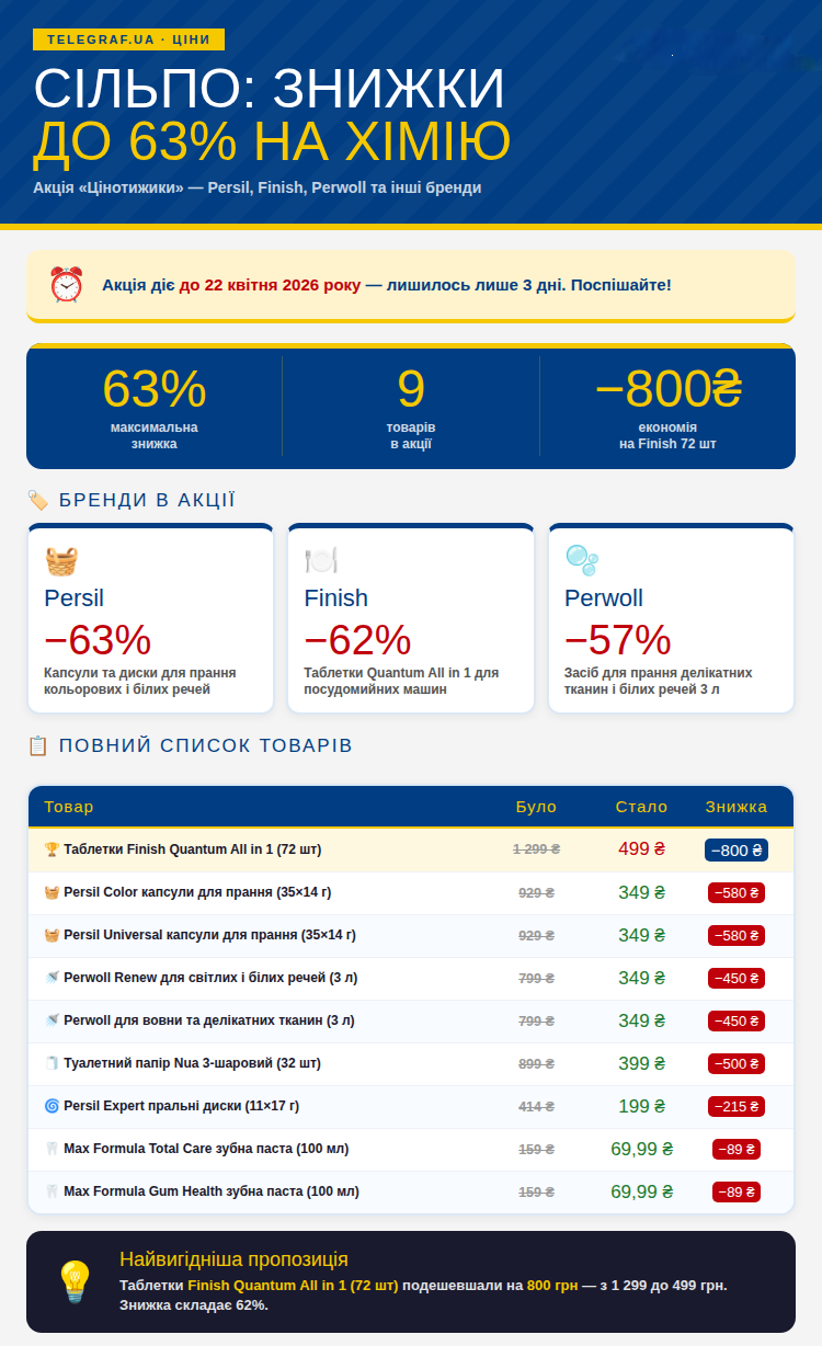 Выгодные предложения на бытовую химию и товары для гигиены в "Сильпо" до 22 апреля. Фото: инфографика "Телеграфа", сгенерированная искусственным интеллектом