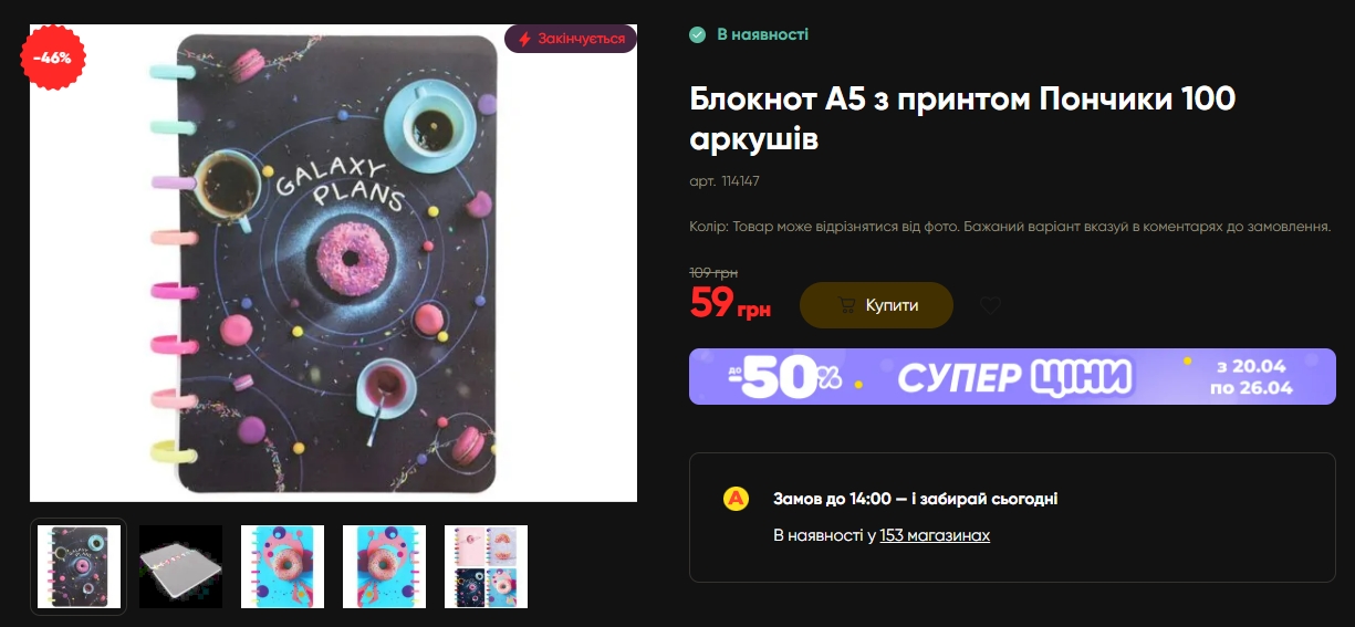 - Блокнот А5 с принтом Пончики 100 листов – минус 46% (109 → 59 грн)