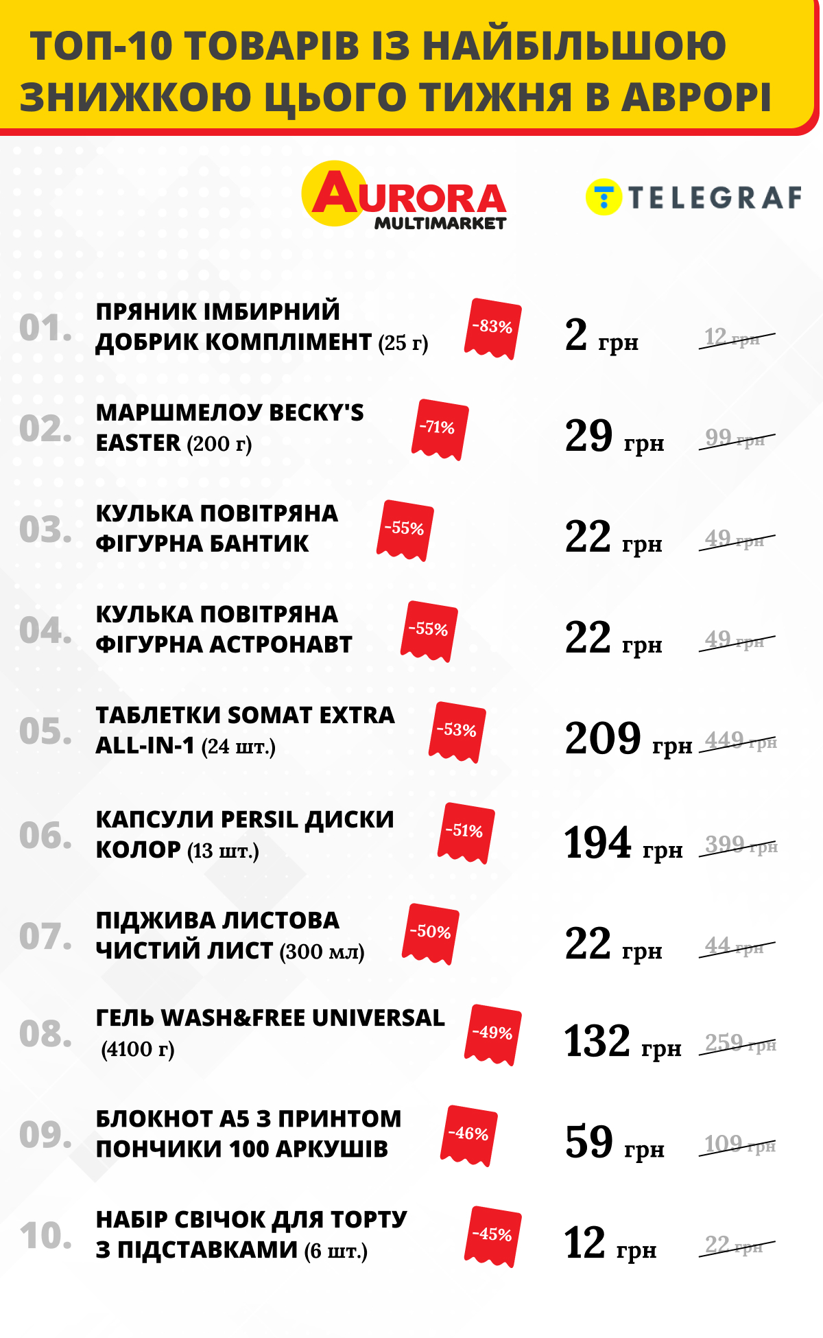 Топ-10 товаров с самой большой скидкой на этой неделе в Авроре