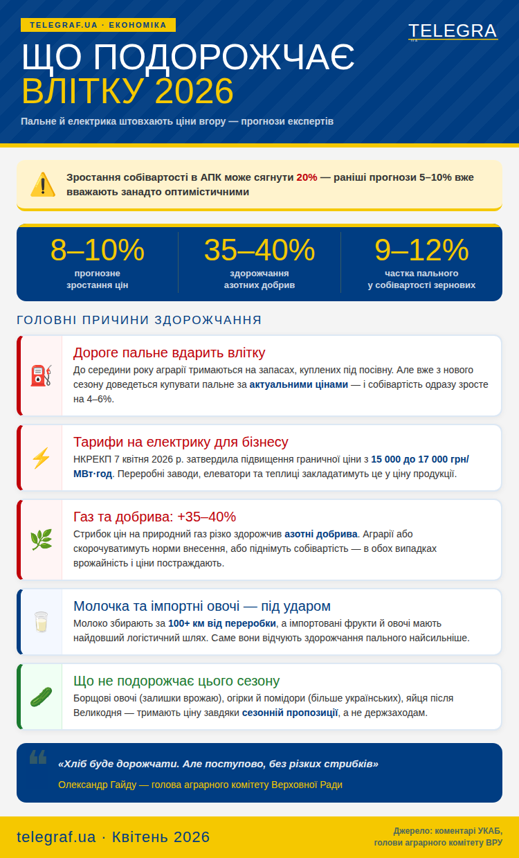 Пока импортированные фрукты и овощи будут дорожать, ведь на их транспортировку нужны средства, овощи борщового набора из прошлогоднего урожая будут иметь стабильную цену. Детальнее о причинах роста стоимости продуктов "Телеграф" рассказал в материал: " Когда тарифы на свет и горючее влекут цены: что подорожает больше всего ".