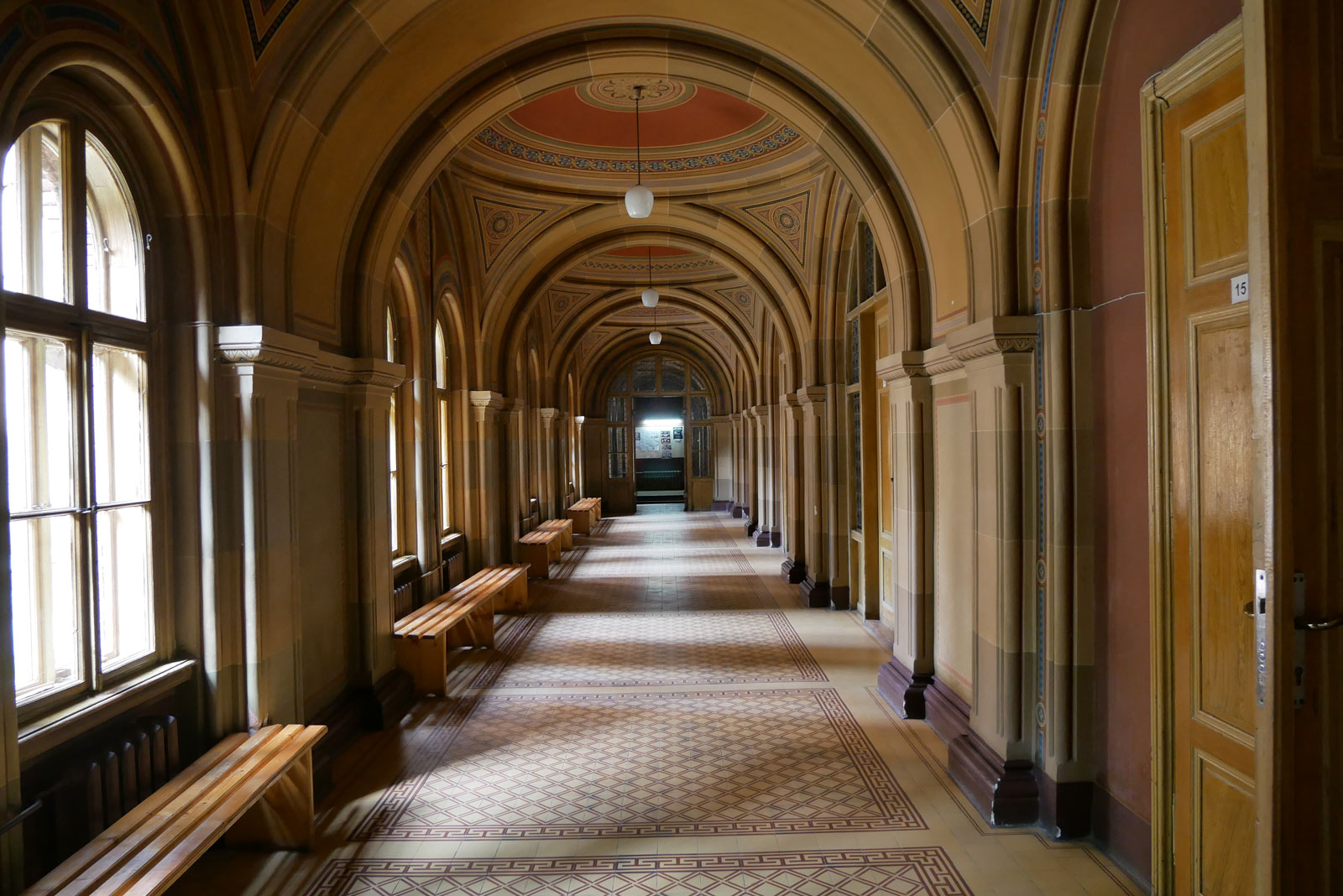 Йозеф Главка объединил в одном ансамбле элементы византийского, романского и мавританского стилей. Благодаря этому здание смотрится одновременно торжественно и немного сказочно. Особенно впечатляют мраморный зал с расписанным деревянным потолком, семинарский корпус с внутренним двориком и Церковь Трех Святителей, интегрированная в ансамбль.
