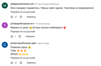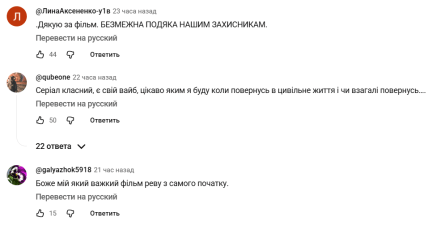 Комментарии под первой серией – сплошная благодарность тем, кто воплотил щемящую историю на экране. Даже тех, кто сейчас находится на фронте. Это основной признак отсутствия фальши в сериале.