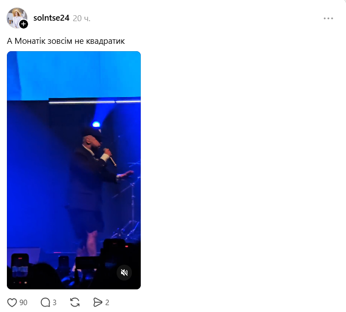 В соцсетях начали активно распространять новое видео с выступлением украинского певца MONATIK, которое вызвало оживленное обсуждение среди пользователей. На кадрах с концерта артиста Владимира Дантеса многие зрители обратили внимание на внешний вид Монатика.