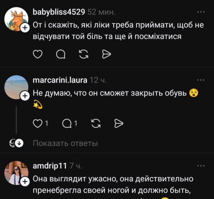 - "Если бы она носила закрытую обувь, то наверное сошла с ума от боли. К сожалению, операция болезненная";