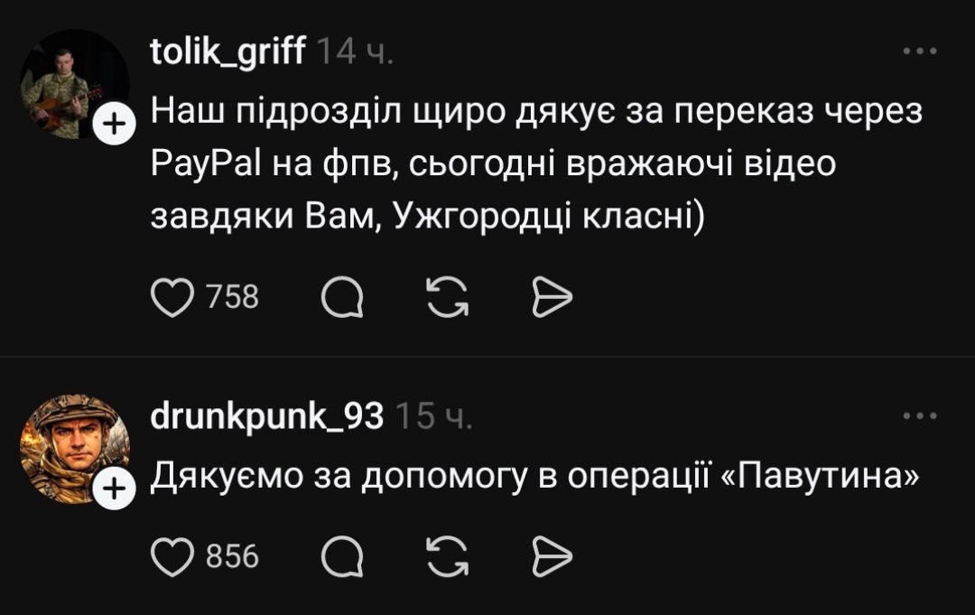 - "Спасибо за ваши донаты на русорез. Вместе к победе".