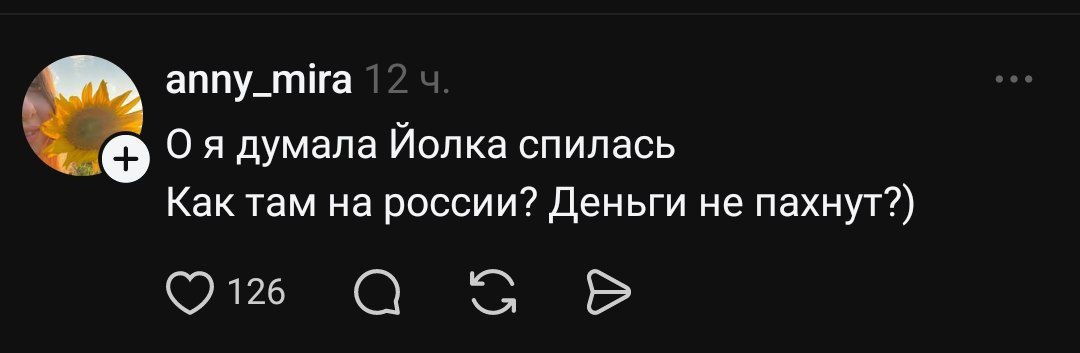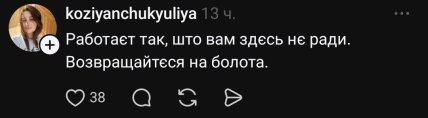 Запроданка опубликовала первую ветку, намекнув на свое искрометное чувство юмора, но вероятно, не ожидала настолько "теплого" приема. На комментарии, касающиеся войны и Украины певица не отвечала.