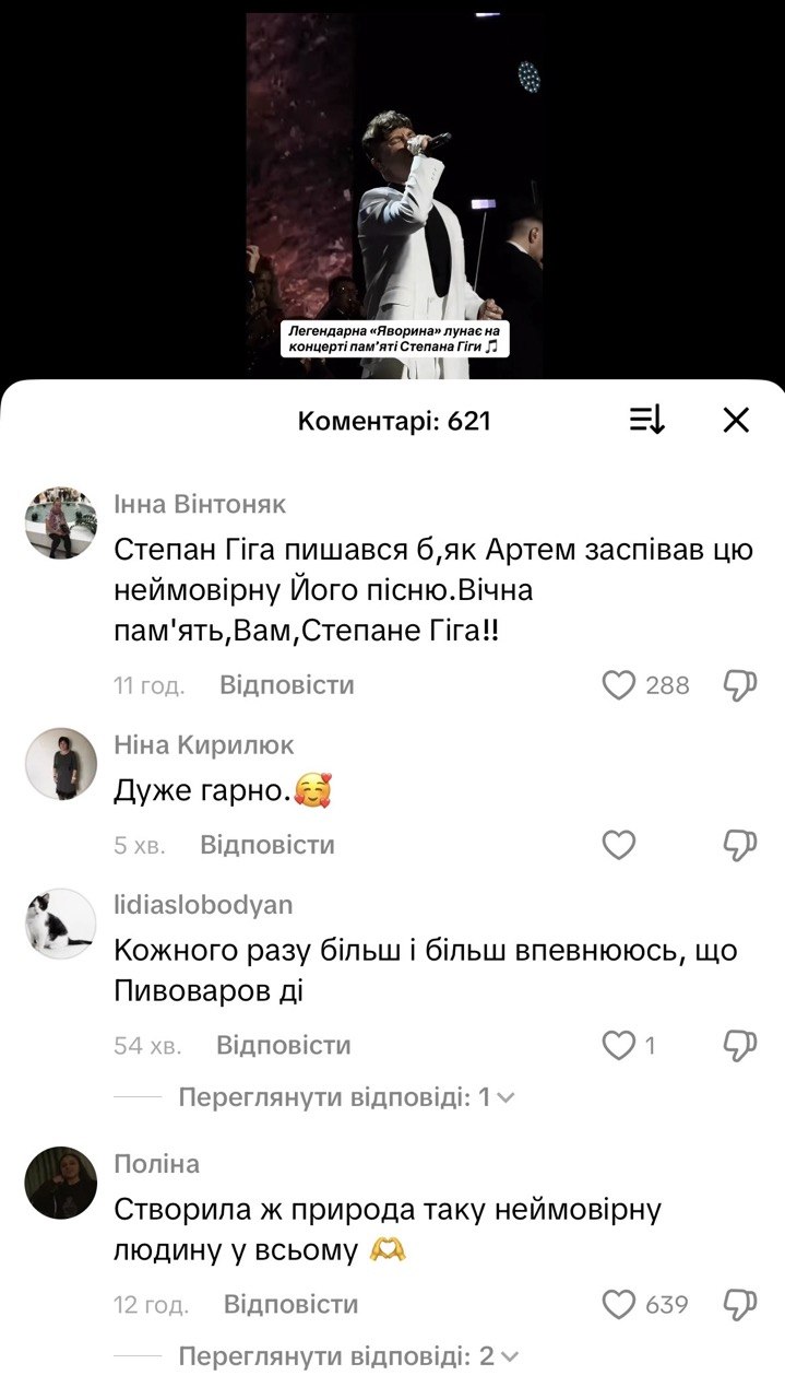 На концерте памяти Степана Гиги, который состоялся 28 марта во Дворце Спорта, произошло то, что заставило публику затаить дыхание. Певец Артем Пивоваров исполнил легендарную песню "Яворина" так, что знакомые строки прозвучали совсем по-новому — драматично и глубоко.
