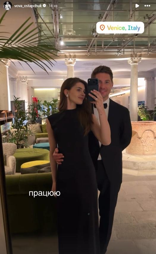 Остапчук опубликовал совместное селфи с женой, сделанное напротив зеркала в роскошном отеле. Несмотря на атмосферу отдыха вокруг, Владимир лаконично подписал фото: "Работаю".